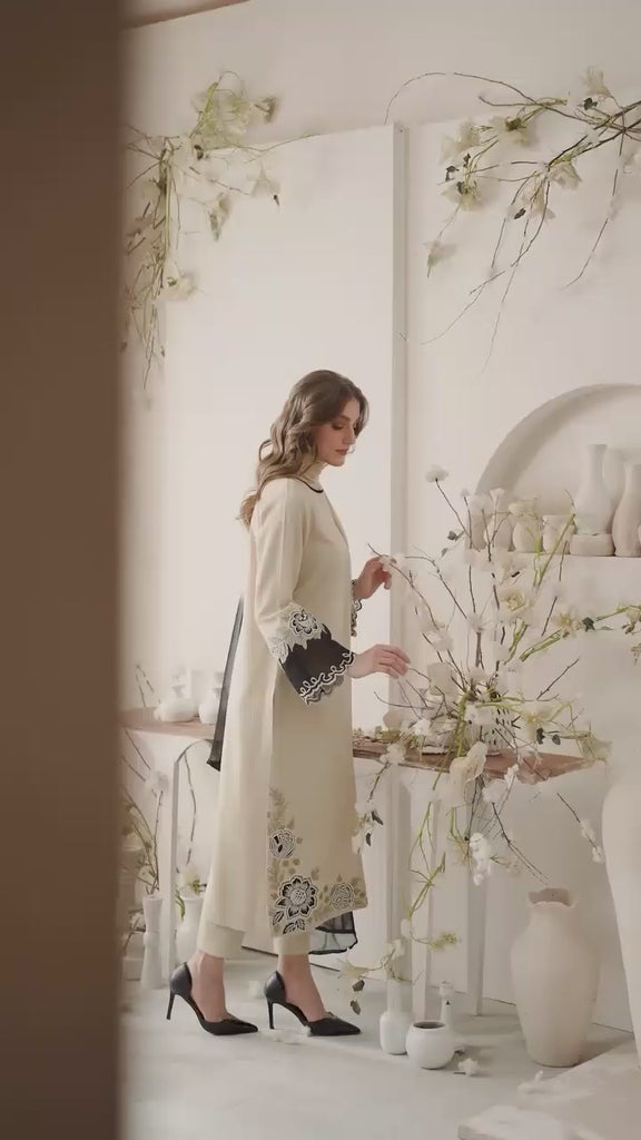 Experience timeless elegance with our Beige & Black Dhanak Suit, a perfect blend of comfort and sophistication. Crafted from premium Dhanak fabric, this 3-piece stitched ensemble is designed to elevate your style with effortless grace.